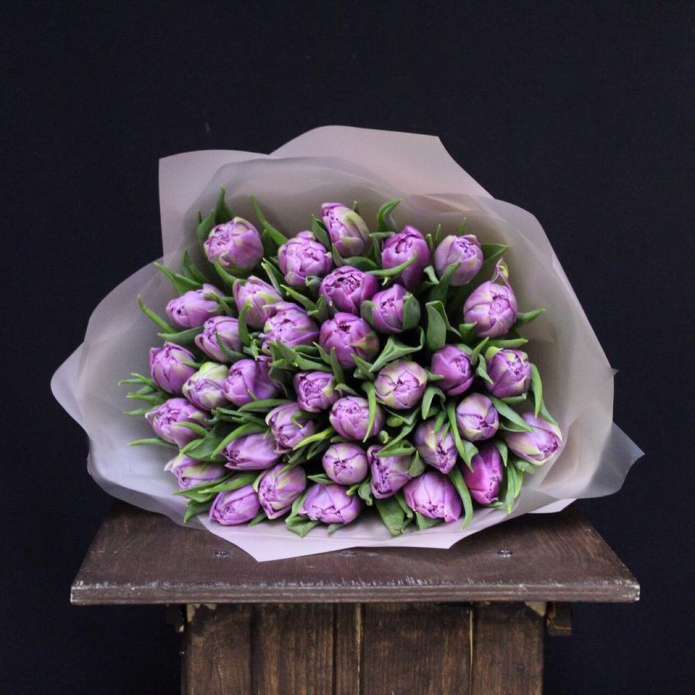 Тюльпан пионовидный дабл прайс – 35 шт.Пленка дизайнерская – 3 шт.Лента атласная – 1 шт.